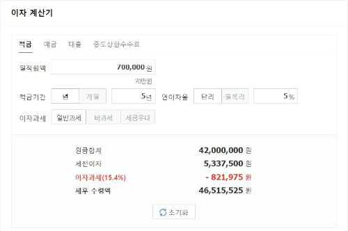 비과세 혜택으로 예를 들어 5년동안 이자가 5%이고 월 70만원씩 납입할 경우 약 82만원에 달하는 이자 비과세 혜택을 볼 수가 있습니다. 절대 적지 않은 돈이기 때문에 꼭 혜택누리시길 바랍니다.